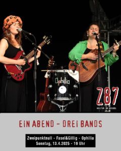 Ophilia berührt das Publikum mit gefühlvollen, sphärischen Gesängen und tiefgehenden Texten. Sie erzählen Geschichten und laden dazu ein, für kurze Zeit in eine andere Welt abzutauchen. Julia Hoffmann und Jessica Haas, die im Jahr 2019 den Singer-Songwriter-Contest des Chambinzky Theaters gewonnen haben, werden – so wie in alten Zeiten – an diesem Abend als Duo auf der Bühne stehen. Zeit die schwebende Atmosphäre zu genießen und sich zum Loslassen und Träumen einladen zu lassen.