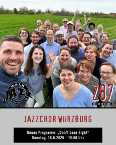 Der Jazzchor Würzburg ist seit knapp 30 Jahren nicht mehr wegzudenken aus der Musiklandschaft in und um Würzburg. Dirigiert von Franny Fuchs und begleitet von einer unverwechselbaren Beatbox. Rhythmisch anspruchsvoll.