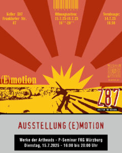 Die Ausstellung (E)Motion zeigt Werke der Artheads, welche sich mit kinetischer Kunst, Tanz und Nina Simones Musik auseinandergesetzt haben und dies in ihrer Kunst verknüpfen und verarbeiten. Die Artheads sind eine Gruppe von Schüler:innen des Friedrich-Koenig-Gymnasiums, die im Rahmen des Projekt-Seminars zusammengewürfelt wurden. In Zusammenarbeit mit dem Mainfrankentheater durften sie das Stück „Classic Soul“ von Dominique Dumais begleiten und sich davon inspirieren lassen.
