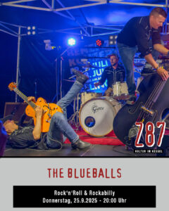 The Blueballs …DIE Rock´n´Roll Band aus Würzburg… spielen sich deutschlandweit mit Rock´n´Roll, Rockabilly, Country, viel Spielfreude und mitreißender Manier in die Herzen der begeisterten Besucher. Mit Gitarre Kontrabass und Schlagzeug ziehen die 3 Vollblutmusiker ihr Publikum auf ihre Seite: angefangen vom Sound der unter anderem etwas härteren Gangart des 50er-JahreRock´n´Roll, Rockabilly und den modernen, teils umarrangierten Hits der 80er und 90er setzt diese Band in Sachen Sound und Show ein Ausrufezeichen!