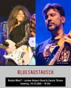 Das aus der Nähe von Nürnberg stammende Trio „Muddy What?“ gehört zu den Senkrechtstartern der deutschen Bluesszene in den letzten Jahren. 2021 wurden sie zur Bluesband des Jahres in Deutschland gewählt. Sie touren unermüdlich durch Deutschland und Europa. Ihren „New Blues“ haben sie auf vier CDs dokumentiert und sich dabei stets weiterentwickelt. Auf der Bühne strotzt das Trio nur so vor Energie, egal sie ob Bluesklassiker in ihrem New-Blues-Style vereinnahmen oder Eigenkompositionen losgelöst von Konventionen und Klischees spielen. „Muddy What?“ sind die angesagte Band der Stunde, die sich keine Bluesfan entgehen lassen sollte.