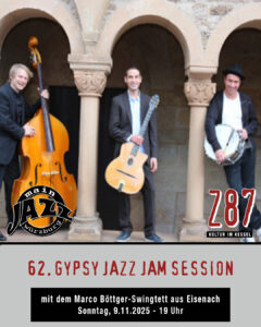 Am Sonntag, den 9. November 2025, lädt mainJAZZ e.V. gemeinsam mit dem Keller Z87 und Inswingtief zur 62. Gypsy Jazz Jam Session – wie immer mit einem besonderen Opener: