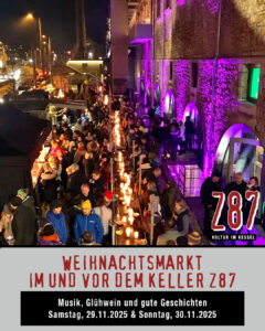 Der Weihnachtsmarkt im und vor dem Keller Z87 steht ganz im Zeichen von Musik, Begegnung und guter Stimmung – ein Nachmittag, der Herz und Hände wärmt und die Vorfreude auf den Advent spürbar macht.