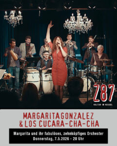 Margarita González und ihr fabulöses, zehnköpfiges Orchester „Los Cucara-cha-cha“ wird Sie in ihrer fantastischen und mehr als weltberühmten Show davon überzeugen, daß es in der Welt der Musik weitaus weniger Grenzen gibt, als man bisher glauben mochte. Lassen Sie sich die Ohren öffnen für die unglaublichsten Perlen der Popgeschichte in ihrem ursprünglichen Sound. Vergessen Sie Prince, Tom Jones oder Madonna, so wie sie uns jahrelang von unwissenden Musik-Mogulen vorgeführt wurden! Denn in Wahrheit ist alles Cha-Cha-Cha und will auch so klingen! Werden Sie zu einem Wissenden und erkennen Sie, daß auch in Ihnen ein traumatisierter Mambo-King steckt, der nur darauf wartet befreit zu werden!