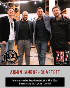 Diese Werke bringt Ármin gemeinsam mit außergewöhnlichen Musikerkollegen zur Aufführung: Bartha Mátyás, der ungarische Pianist mit beeindruckender Technik, war kürzlich mit Scott Robinson auf Tournee. Der US-amerikanische Bassist Danny Ziemann und Oleg Markov, einer der gefragtesten Schlagzeuger der Wiener Jazzszene, komplettieren das Ensemble.