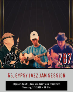 Ablauf: Die opener Band „Gare du Jazz“ spielt für euch ab 19:00 Uhr ein kleines opener Konzert, danach können Muszierende auf akustischen Instrumenten wechselweise einsteigen. Die Combo INSWINGTIEF steht dann natürlich auch parat. Wer schon ein bißchen üben möchte: Die opener Stücke sind dieses Mal: