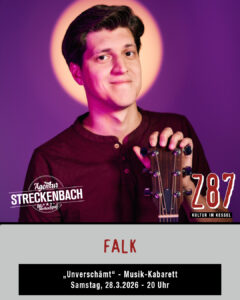 „Unverschämt!“ kann als empörter Ausruf verstanden werden, bei Menschen mit Sinn für Humor, aber auch ein echtes Qualitätssiegel sein – wie bei einem Konzert von FALK. Der Liedermacher ist auch in seinem aktuellen Konzertprogramm „Unverschämt“ erfreulich grenzüberschreitend in alle Richtungen, gepaart mit bissigem, aber sympathischem Sarkasmus – ein liebevoller Pöbler eben. Zugleich ist er aber auch mehr als das. Der Liedermacher ist ein Geschichtenerzähler mit nachdenklicher Seite, die berühren kann.
