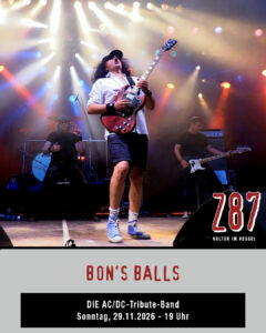 Zudem reichern Bon’s Balls ihre Setlist neben den großen Hits wie „Highway to Hell“, „T.N.T.“ und „Thunderstruck“ auch immer ein paar Spezialitäten aus dem reichhaltigen Song-Fundus der Brüder Angus und Malcom Young an.“