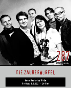 „Die Zauberwürfel“ zollen mit viel Spaß an der Sache einem spannenden Kapitel der Popmusik Tribut. Wer auf Ideal, Extrabreit, Spliff, Ukw, Fräulein Menke und deren Zeitgenossen steht ist hier an der richtigen Adresse, denn das Programm besteht ausschließlich aus „Neue-Deutsche-Welle“ Songs der 80er-Jahre.